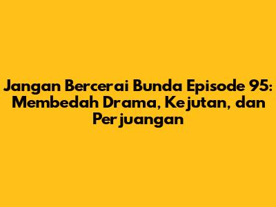 Jangan Bercerai Bunda Episode 95 adalah episode yang penuh kejutan, konflik, dan harapan. Kejutan-kejutan yang tak terduga berhasil mengguncang alur cerita dan mengubah pandangan kita terhadap beberapa karakter. Perjuangan tanpa henti yang dilakukan oleh para karakter utama memberikan inspirasi dan pelajaran berharga tentang kehidupan. Harapan yang membara menjadi pendorong bagi mereka untuk terus maju dan tidak menyerah. Episode ini berhasil membuat penonton terhubung secara emosional dengan setiap karakter dan membuat mereka semakin penasaran dengan kelanjutan cerita. Jangan lewatkan setiap momen penting dalam Jangan Bercerai Bunda, karena setiap detailnya akan memberikan dampak yang besar bagi keseluruhan cerita. Terus saksikan dan dukung Jangan Bercerai Bunda untuk melihat bagaimana para karakter utama berjuang untuk meraih kebahagiaan dan menemukan akhir yang mereka impikan!